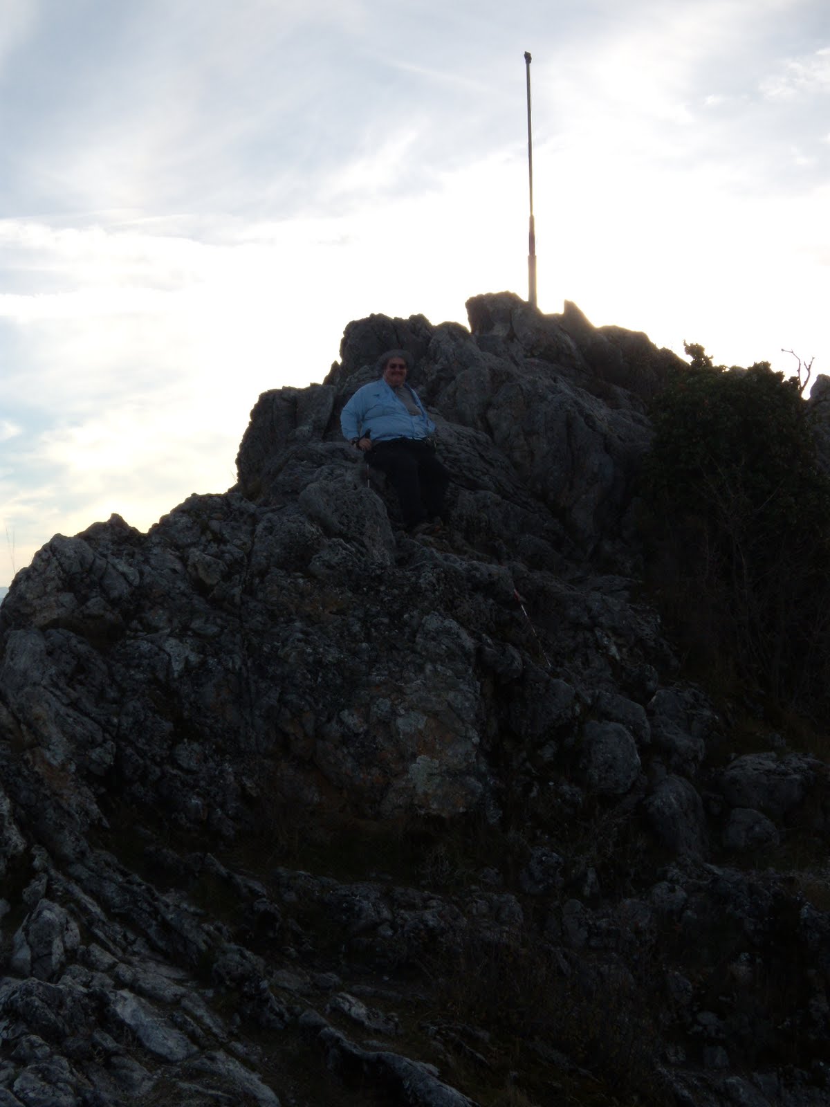 The view was worth every minute of the climb. Plus the awesome feeling of being someplace where I never thought I'd be. We spend about 20 minutes at the summit of the Peak making 4 radio contacts (N1WC, W6DNE, KE6AFE, and KG6WIL, 3 simplex, one possible repeater) to see what the conditions were like. (We had great coverage on 2m FM, but signals from the nearby radio towers would interfere at times.)I "hands and feet"ed and rode my rump down from the peak back to the merely "steeper rock stairs."